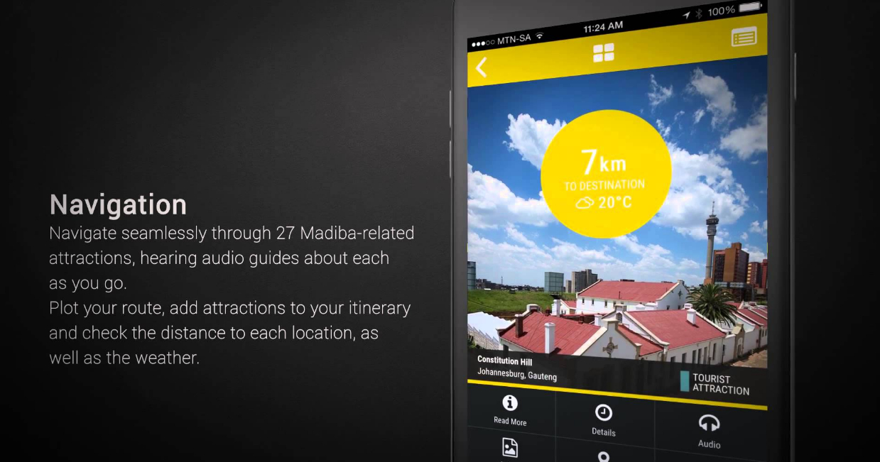 L’applicazione propone 27 attrazioni turistiche che si ispirano alla vita di Madiba e ai luoghi della memoria del Sudafrica, uno per ogni anno che Mandela ha passato dietro le sbarre come prigioniero politico. Gli utenti possono ammirare le attrazioni sudafricane sulla mappa, le loro foto e ricevere tutte le informazioni legate a prenotazioni, biglietti e contatti.